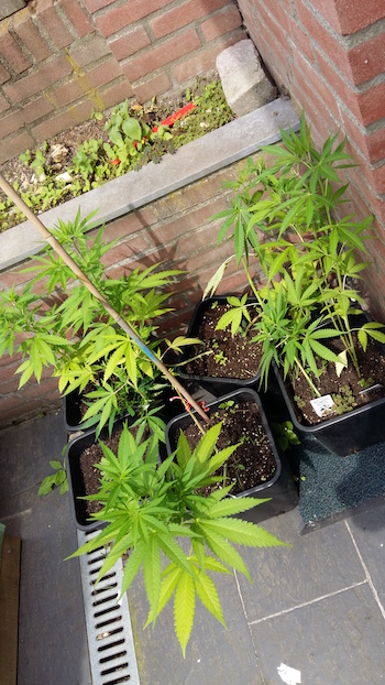 De planten slaan goed aan in de zelf samengestelde grond. Voeding geven is op dit moment totaal overbodig, ze floreren. Maar ook al floreren ze nu, ze krijgen nog een extra maaltijd als de tijd wat verder gevorderd is. Als toevoeging is er een Purple Kush in de grond gegaan, deze zal als kleine zus worden toegevoegd aan de andere vier kasbewoners. Ook zullen we nog een paar exotics bijplanten, een Frisian, een nieuwe Haze en een Purple Haze.