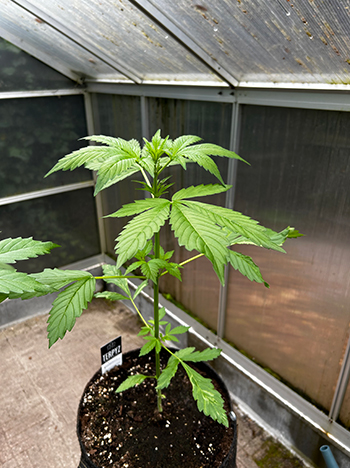 Bij de autoflowers Erdbeer en Alpine Crocket, beginnen de eerste bloeiverschijnselen al zichtbaar te worden. Nu de zon wat beter brandt, beginnen ze te groeien en te drinken. De fotoperiode gevoelige planten Big Yeti en Zmäkdaun staan nog even in een klein potje. Als het plastic op de kas zit zullen deze dames in de volle grond belanden.