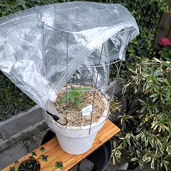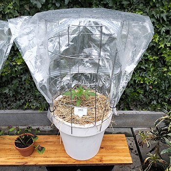Goed, ik moest natuurlijk ook nog een paar dagen weg naar Berlijn. En aangezien de weersvoorspellingen echt te wensen overlieten, heb ik ze bij vertrek in de foliekas gezet, op een plek in de tuin waar ze (als de zon er is) het meeste kunnen genieten.