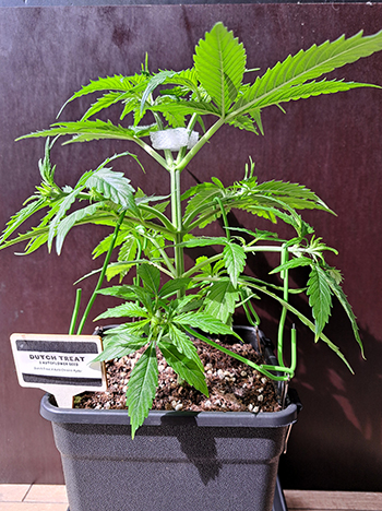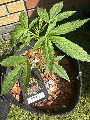 Ik heb haar overigens in de grootste bak geplaatst die ik had liggen. De twee andere autoflowers zien er gezond en steady uit. De Zmäkdaun die in de volle grond staat, is onderhand 150 cm met een paar zielige blaadjes bovenaan. Wie weet word het nog wat. Tot zover mijn update van de SeedStockers strains.
