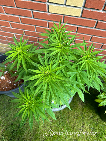 Tot slot de Alpine Honey Melon op de rechterfoto hierboven. Deze staat er van de drie het beste bij. Ze is één keer getopt en wordt al een mooie struik.