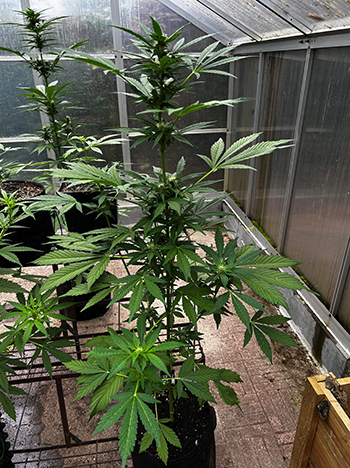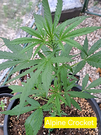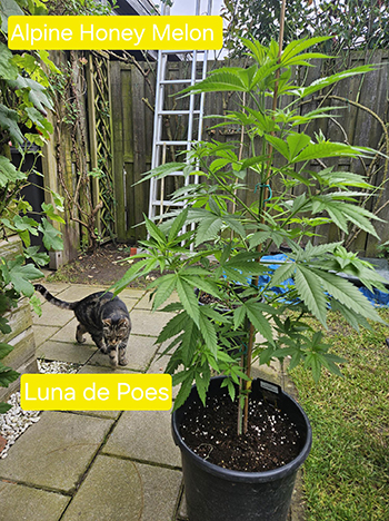Dan de drie planten die bij mijn maatje staan. Die heeft dit jaar goed uitgepakt, en een ware outdoor-kweektent aangeschaft, waardoor die optimaal aan het genieten zijn. Ook als de zon niet schijnt. Wel heeft de Alpine Crocket last van hittestress lijkt het, misschien hebben jullie enig idee of advies? De andere twee die in de kweektent staan hebben er geen last.