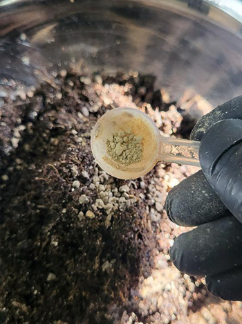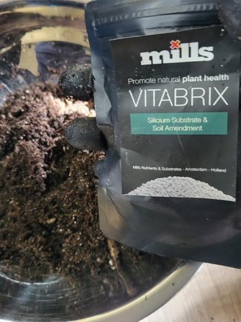 Silicium gaat er ook nog wat doorheen, die pak ik altijd van Mills in vorm van de Vitabrix omdat die het gewoon prima doet voor mij. Van beide producten zal het nog geen theelepel zijn voor de drie kleine potjes, maar goed een kleine head start voor je zaailingen kan geen kwaad.