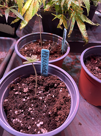 De Zmäkdaun (die naam staat al in de autocorrect van de telefoon, dus dat is makkelijk 🙈🤣🤣 ) is mooi ontkiemd en kan binnenkort in al een grotere pot. Dus met deze twee strains zullen we het doen. Maar niet gevreesd we hebben van elk exemplaar een paar extra 😊 thanks to SeedStockers 🙏