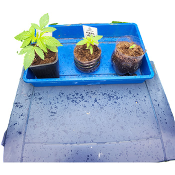 Na overdag in het natuurlijke licht te groeien, kregen de dames ’s avonds altijd nog een paar uur extra licht, zodat ze toch maar genoeg licht kregen om lekker te groeien. Van het weekend was het zover en zijn de mooi gegroeide dames verhuisd naar hun grote zakken. Hierin zullen ze de rest van het kweekseizoen groeien en bloeien.