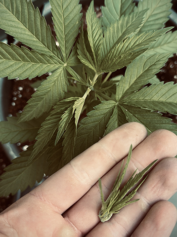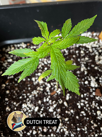 Tussen de autoflowers zit helemaal een bijzondere plant, een heuse mutant. Alpine Crocket kwam ter wereld met niet twee maar drie lobblaadjes. Na een paar dagen kreeg ze ook drie kartelblaadjes. Zou deze plant ook een derde stam per node krijgen? En betekent dit dat ze ongeveer 1/3 meer opbrengst krijgt? Dat worden weer interessante bevindingen!