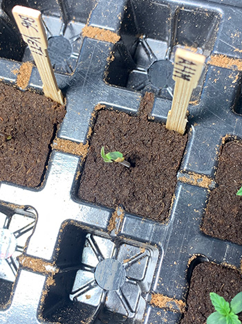 Update 19 mei 2024: Hallo allemaal, bij deze een kleine update. Het is tijd voor beschuit met roze muisjes want alle zes de zaden zijn ontkiemd! De zaailingen zijn eerst in de Eazy Plugs en daarna in een potje beland. De fotoperiode gevoelige soorten Big Yeti, Zmäkdaun en Alpine Honey Melon zette ik in een klein potje met biologische moestuingrond. Ik heb dat wat luchtiger gemaakt en kokos er doorheen gemengd. Deze zullen uiteindelijk in de volle grond komen.
