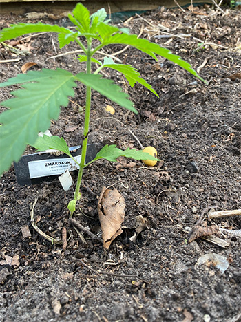 De locatie van de lichtgevoelige Alpine Honey Melon en Big Yeti heb ik moeten verplaatsen van de volle grond naar een kweekzak van 20 liter. Dit is helaas ook in verband met de allesvernietigende slakkenterreur.