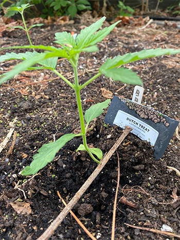 De Zmäkdaun daarentegen gaat als een tierelier. Weliswaar in een hobbykas, met het dakraam open is het op warmere dagen een heerlijke temperatuur om goed te kunnen groeien. Gelukkig blijven de slakken uit de buurt.
