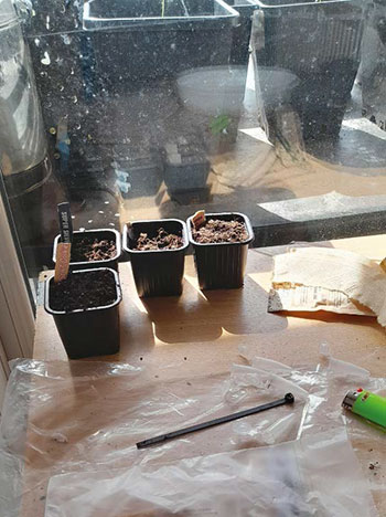 Zondag 16 april: Een mooie dag want alle zaadjes zijn mooi gekiemd… Potjes met biologische zaai- en stekgrond erbij, en planten. Nog een lekkere reggae tune, en even zegenen met de blauwe rookwolk van de net aangestoken splif… Give thanks, Jah Rastafari