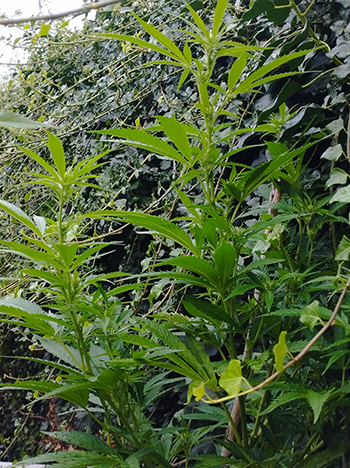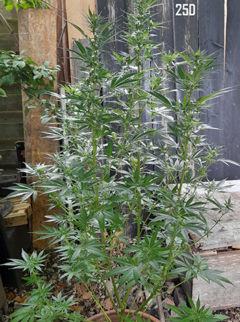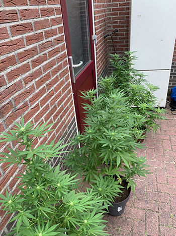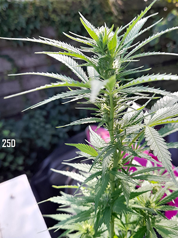 De voorste plant hieronder links is de #25 Dynamite, is mooie volle, grote plant geworden. Ik heb hier ook veel kleine topjes uitgehaald. Ze staat er prachtig bij en is wat later met bloeien begonnen, net als haar zus ernaast, de Dynamite Kiks.