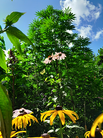 Update 4 augustus 2023: Beste CNNBS, met al die nattigheid is er weinig lol te beleven in de tuin. Op een schaars zonnig moment heb ik snel nog even deze foto’s kunnen maken. De planten hebben weer extra ondersteuning gekregen van bamboestokken, en zo de wind en hoosbuien goed doorstaan.