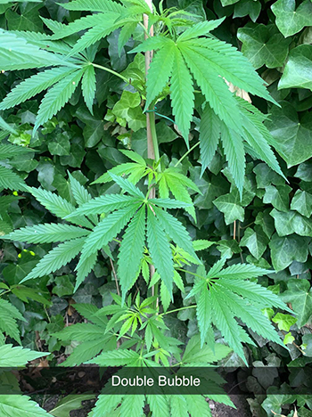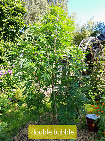 Dan de Double Bubble, die kon wel wat voeding gebruiken omdat ze wat lichter van kleur werd. Dus deze heb ik ook een klein beetje koeienmest in korrelvorm gegeven. Nu zien of ze terug wat donkerder wordt… De bladeren vormen op zich wel een heel mooie en dik indica bladerdek 😊