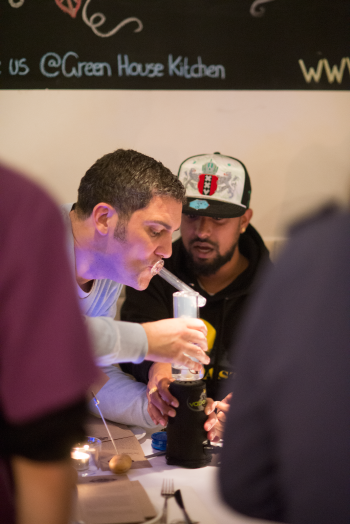 Om Nederland kennis te laten maken met het concept, organiseerden Green House Kitchen, Vaposhop en Azarius gezamenlijk een heerlijk diner voor een aantal bekenden uit de cannabisbranche, RollingStoned was uiteraard van de partij. Na een korte kennismaking is het tijd om aan tafel te gaan. Celester Roskam, eigenaresse van het establishment legt uit wat we gaan eten en vapen en vertelt dat haar koks de hele week stoned hebben rondgelopen om de perfecte wietsoort bij ieder gerecht te vinden.