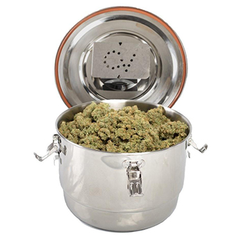 Een weckpot is een goede container om wiet in te laten curen, maar laat helaas licht door, waardoor THC wordt afgebroken naar CBN. Je kunt hem natuurlijk op een donkere plek neerzetten maar misschien is een CVault een betere bewaarplaats. De CVault is een roestvrij stalen container en dus wél lichtdicht, en heeft ook meteen een goede oplossing om de Boveda Patch te plaatsen. De CVault is er in diverse maten, en wat ons betreft één van de betere manieren om cannabis te curen én lange tijd te bewaren.