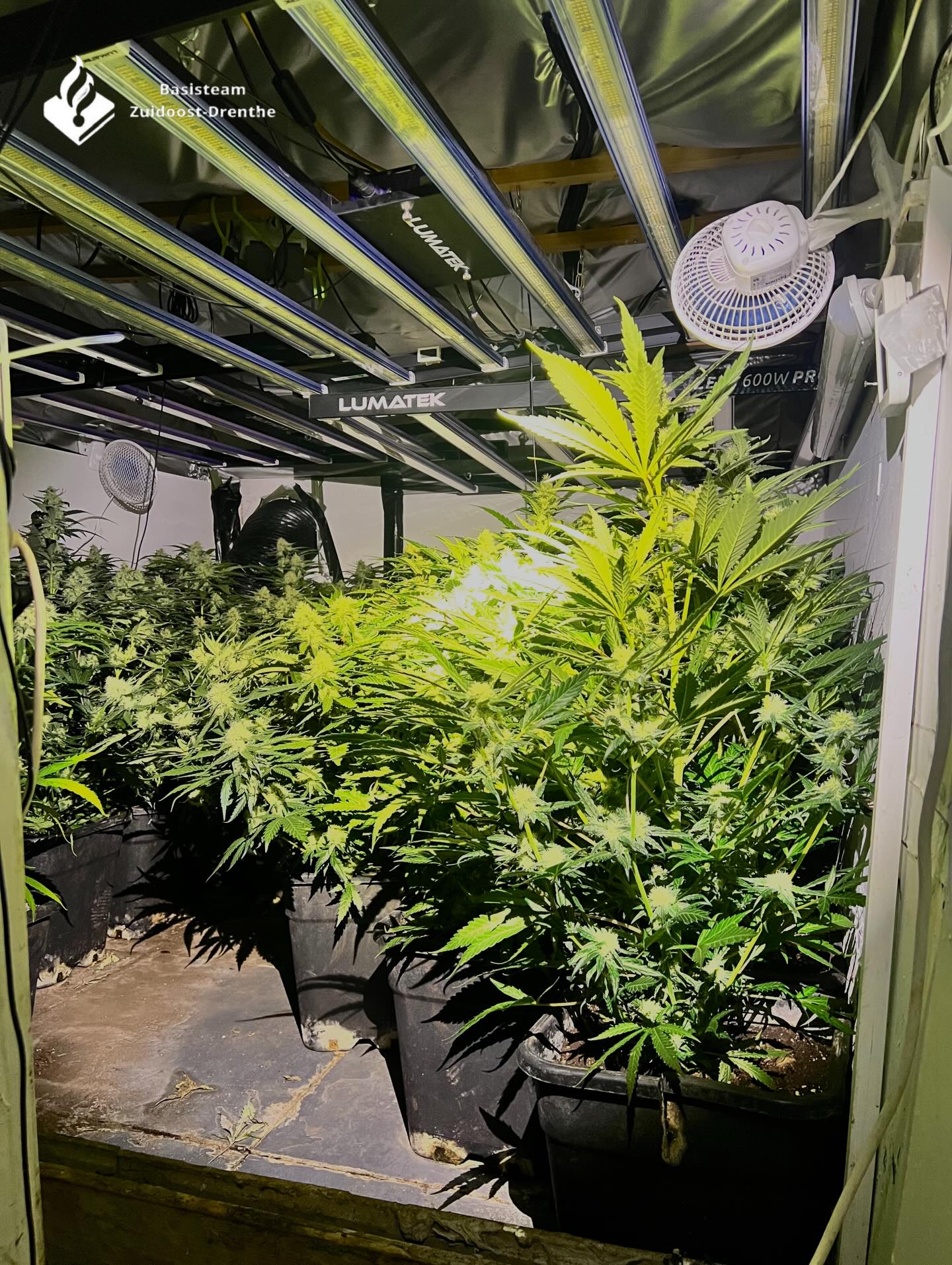 Dat weten we zeker dankzij bovenstaande foto die de Politie Emmen op haar socials postte. Het kiekje is gemaakt nadat de agenten een woning in Emmer-Compascuum “betraden”. En dat deden ze naar eigen zeggen weer “naar aanleiding van meerdere signalen”. Dan weet je het wel weer: hier is door meer dan één Emmer-Compascuumer met MMA gebeld! Flauw hoor. En heel sneu voor deze kweker en zijn 35 dames.