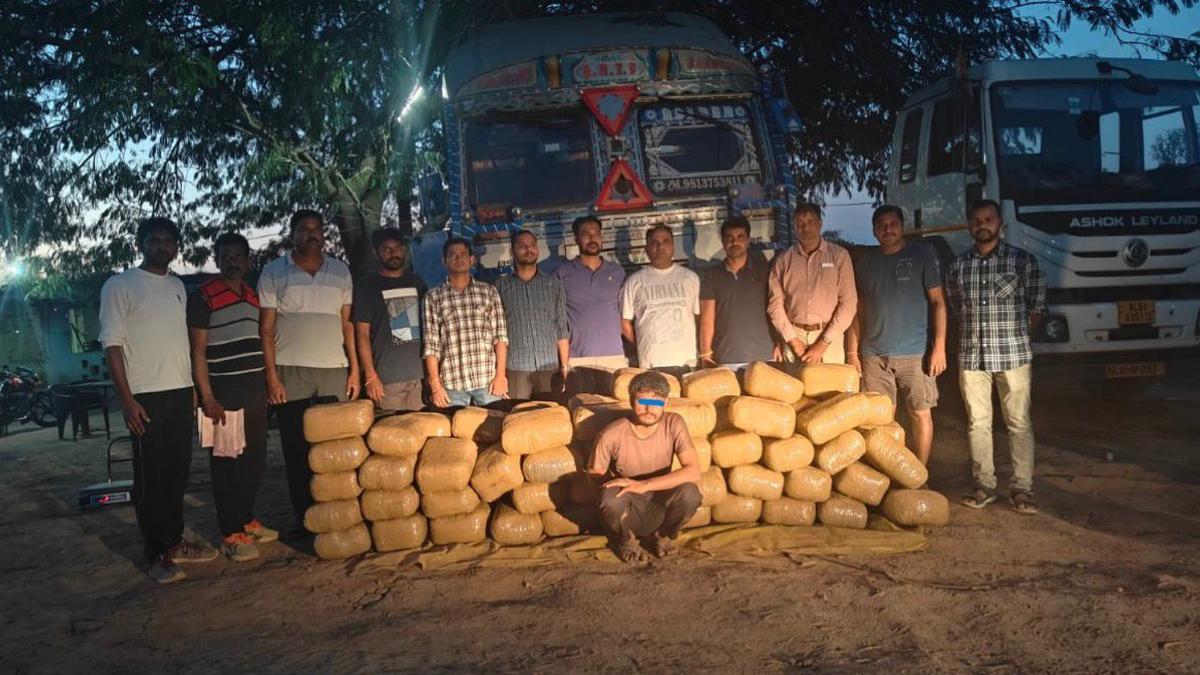 Ook in India richten ze graag de schijnwerper – of in dit geval het flitslicht van de fotocamera – op iemand die zo ongelukkig is geweest om met verboden substanties in de lange armen van de wet te lopen. Die twaalf valse apostelen die achter de balen met wiet en de verdachte Sjaak staan, behoren tot het EAGLE-team van RNCC Khammam en het Narcotics Control Bureau (NCB), divisie Ranchi, zo bericht The Hindu.