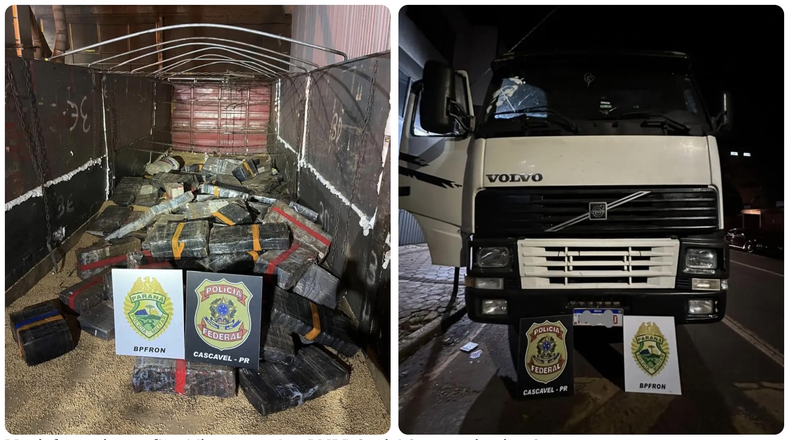 Kijk, een Volvo in Brazilië! En niet zomaar een truck, maar eentje die behoorlijk was volgeladen met wiet zoals je ziet. Dát wij dat zien is dan weer te danken aan een vuile, vieze tip. Daardoor stonden manschappen van de grenspolitie BPFRON (Batalhão de Polícia de Fronteira) en de Federale Politie de met ‘sojabonen’ geladen Volvo doodgemoedereerd op te wachten bij een tankstation op de BR-467, vlak bij de stad Toledo.
