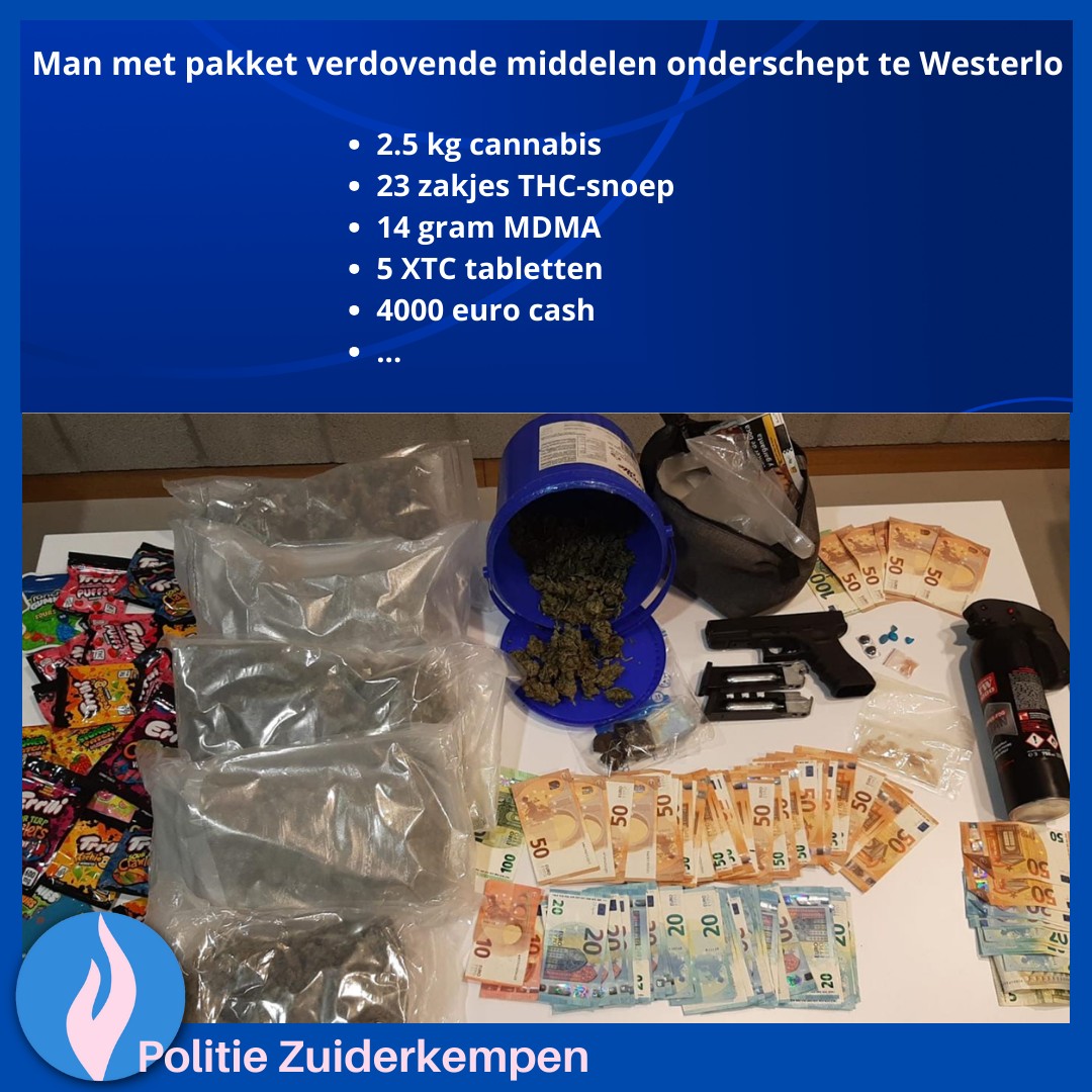 De ondernemende jongeman liep tegen de lamp – met een postpakket uit Frankrijk in de hand – terwijl hij in het centrum van Westerlo liep. Blijkbaar bij voorbaat een verdachte handeling aldaar. Stomtoevallig bevatte de Franse doos “twee vacuümverpakkingen van elk 350 gram cannabis”. Bij de ontvanger thuis werden vervolgens “nog meer verdachte zaken aangetroffen zoals drugs, pepperspray, een luchtdrukpistool en 4.000 euro cash geld”.