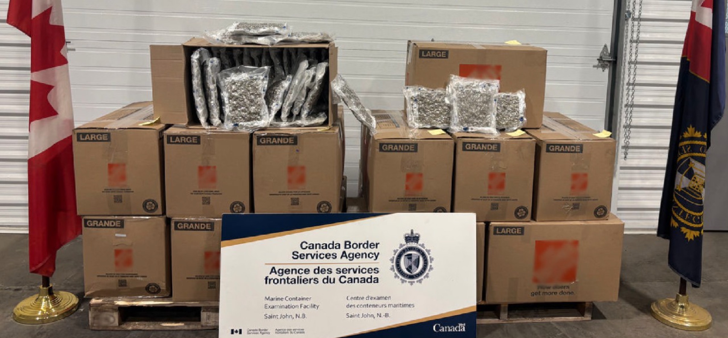 Dat is volledig op het conto te schrijven van de Canada Border Services Agency (CBSA) en de Royal Canadian Mounted Police (RCMP), die in eendrachtige samenwerking de container tegenhielden in de haven van Saint John, New Brunswick. “Tijdens het onderzoek ontdekten grensbeambten 16 grote kartonnen dozen gevuld met vermoedelijke cannabis. In totaal werden 399 verpakkingen vacuümverpakte cannabis in beslag genomen, met een gewicht van 218 kilogram”, oreren de ambtenaren op de site van de douane.