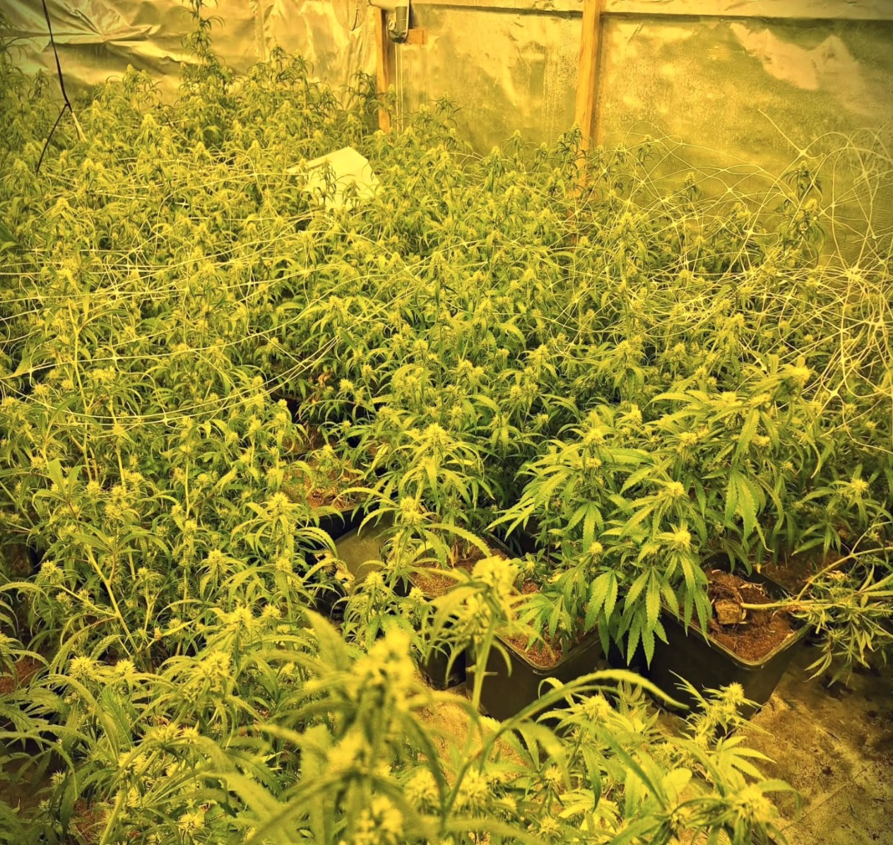 We citeren de Karma Police: “In de woning trof de politie een professionele cannabisplantage in drie kweekruimtes aan, goed voor 932 planten. In twee ruimtes stonden oogstrijpe cannabisplanten, de andere ruimte was voorzien van de nodige installaties voor de teelt van cannabis zoals o.a. transformatoren, groeimiddelen, bloempotten en potgrond. Om de installatie van elektriciteit en water te voorzien werd gebruik gemaakt van illegale aftakkingen. De installaties werden ontmanteld en vernietigd door de Civiele Bescherming.”