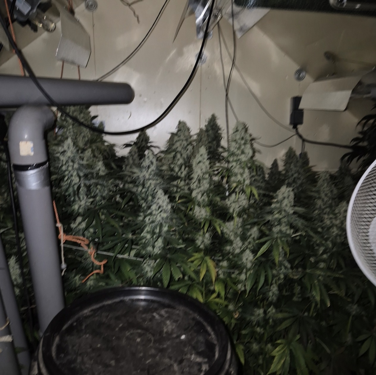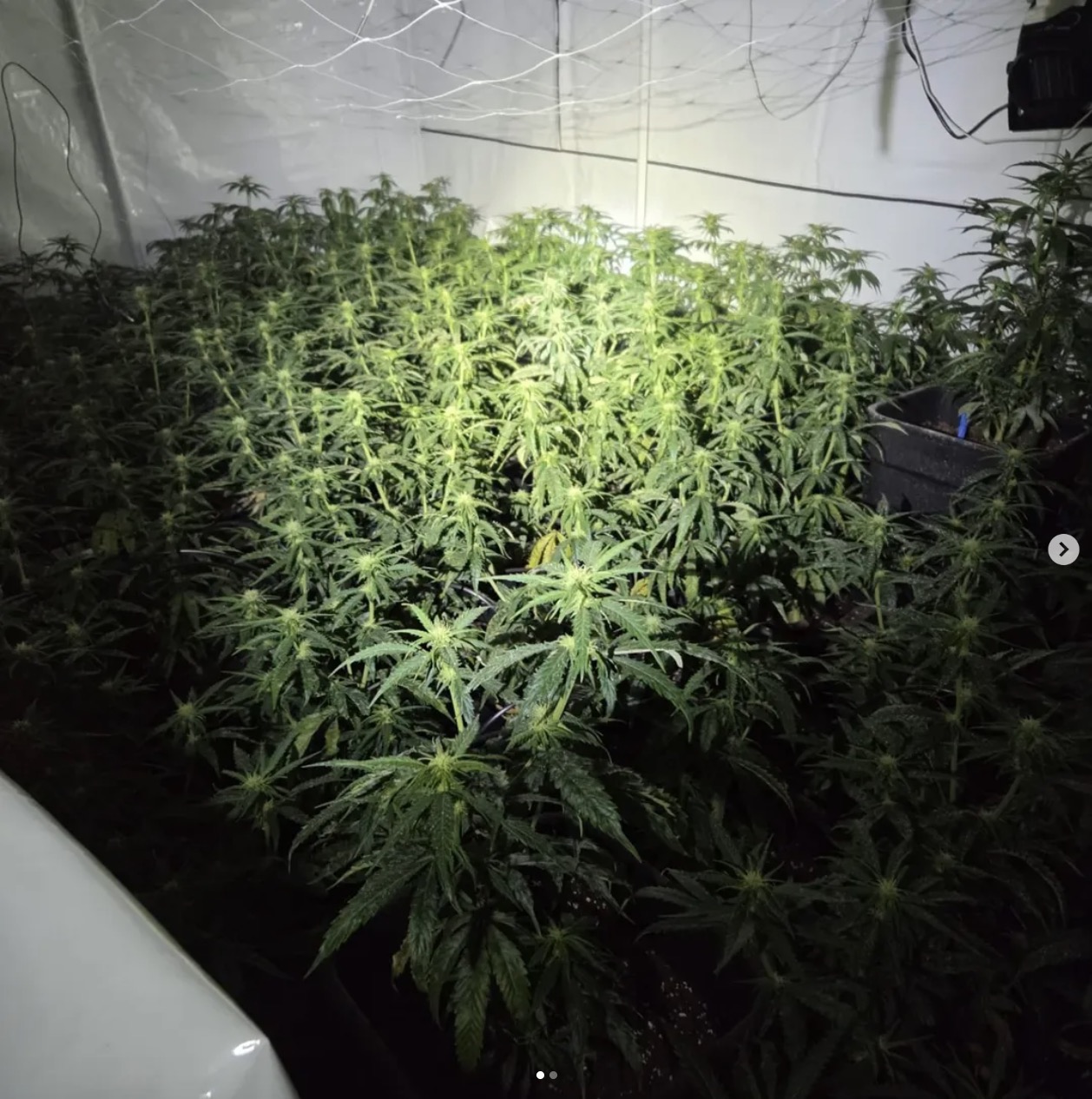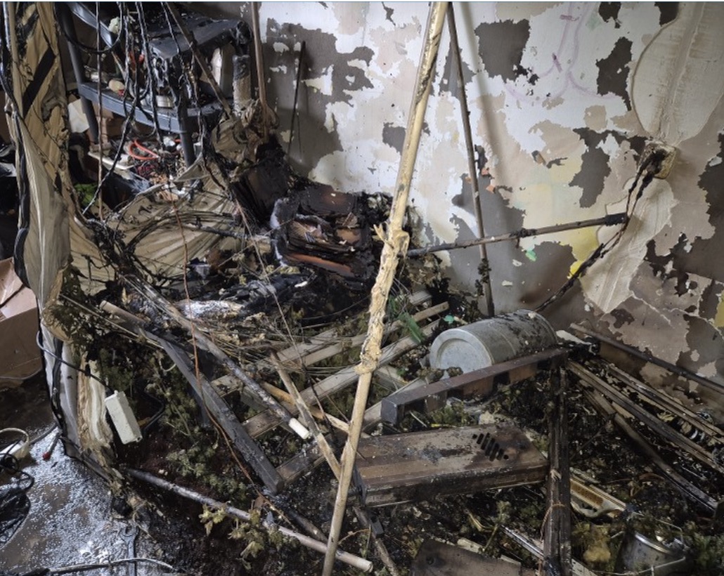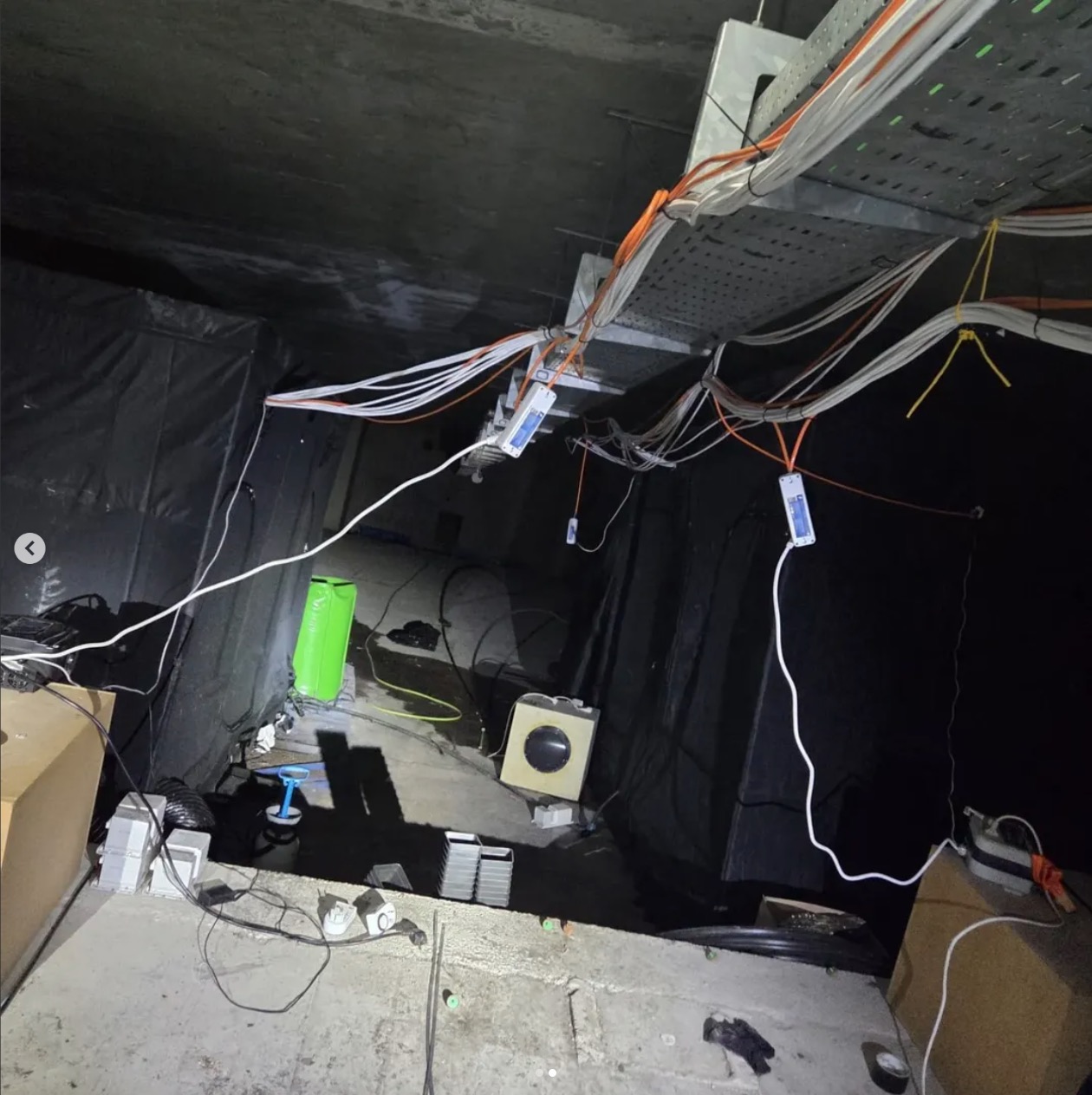 Behalve meerdere kweekruimtes vond de politie in aangrenzende ruimtes o.a. “lampen, potten, droogrekken en knipscharen die bij het kweken en verwerken van hennep worden gebruikt”. Dat kan natuurlijk niet door de beugel in een beschaafde natie. Vandaar dat de agenten er een “gespecialiseerd team” bijhaalden voor plantenslachting en apparatuurvernietiging, wat nogal eufemistisch wordt vertaald met “ontmanteling“.