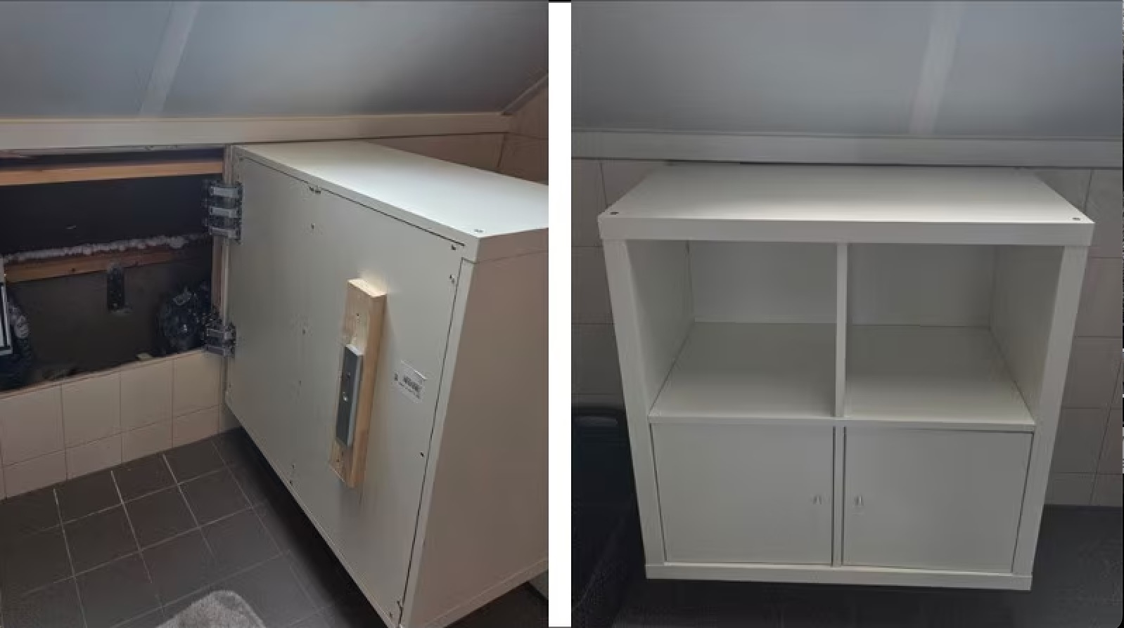 De Fiscale Inlichtingen- en Opsporingsdienst was erbij omdat de hele zaak aan het rollen ging toen in oktober in Rotterdam een geldkoerier werd gevat. “Dit onderzoek leidde al snel naar een zogenaamde ‘stashlocatie’,” schrijft de politie. En ook naar de tweede verdachte die is gearresteerd voor het aparte keukenkastje op de foto. Daar zat 8 kilo wiet achter verstopt, maar het olijke duo is ook nog 30.000 euro cash, 2 Rolex horloges en een auto kwijtgeraakt aan het ongewenste bezoek op de elfde van de elfde…