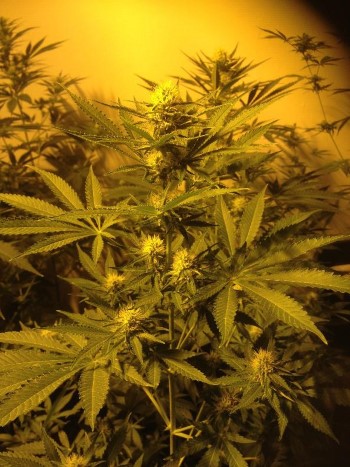 Mijn kalender vertelt me dat de planten inmiddels dertig dagen onderweg zijn in hun bloeifase. De Cheeseplanten kregen sinds dag 1 van de bloei een nieuwe energiebron in de vorm van een 1000 Watt HPS lamp met een Almeco FlexWing kap erboven die het licht lekker breed verspreid. Deze lamp heeft ook een iets ander kleurenspectrum dan de 600 Watter, dat beter geschikt is voor de bloeifase.