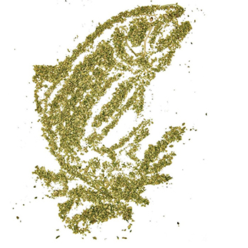 Greg Welch zal waarschijnlijk een hoop grinders verslijten per jaar; hij maakt namelijk kunstwerken van wat wij liever gewoon oproken: gemalen wiet. Nou ja, niet alleen gemalen wiet. Welch gebruikt ook takken, bladeren, zaadjes en complete toppen voor zijn kunst. Toen hij ermee begon was medicinale cannabis in zijn thuisstaat Florida nog illegaal, en dus werkte hij onder het pseudonym Ty Forto. Hieronder zie je hem aan het werk.