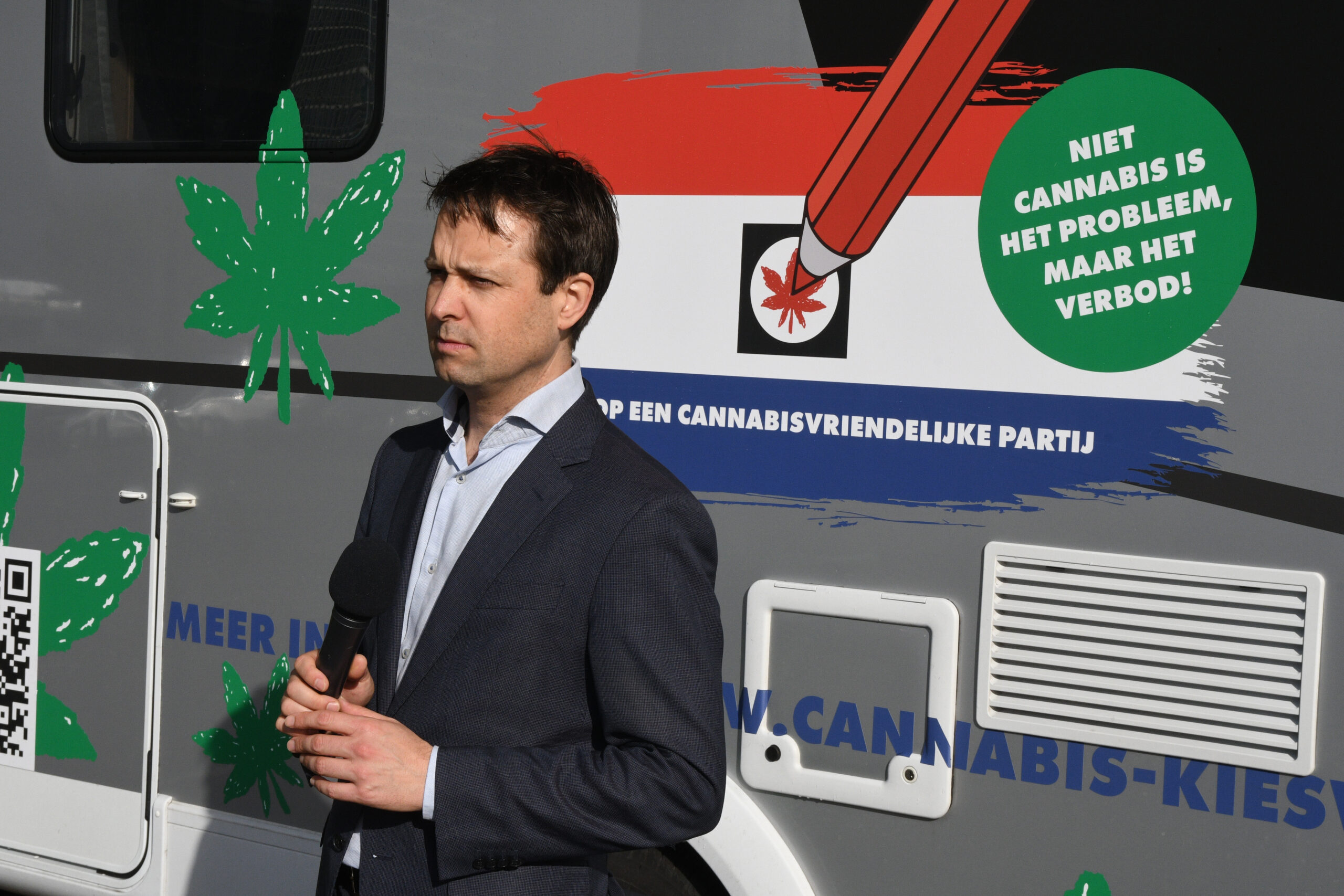 Ook Joost Sneller van D66 vereerde de CannaStemBus met een (werk)bezoek.