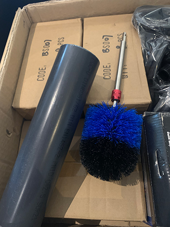 Ik heb (door mijn lichamelijke omstandigheden) een hekel aan schrobben, maar bij de Action kwam ik een soort WC-borstel tegen voor op de boormachine. Dat is de reden waarom ik voor dikke buizen heb gekozen zodat je lekker met een accuboormachine deze borstel door de buizen kunt rammen.