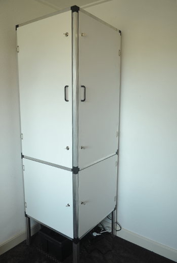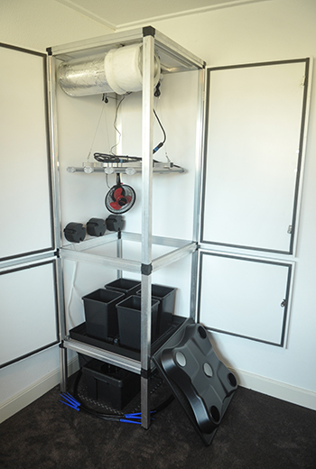 Ik vond de kast gemakkelijk op te bouwen en een stuk degelijker dan de tenten waar ik normaal gesproken in kweek. Nadat ik alle koppelingen goed had vastgedraaid, heb ik het systeem gevuld met water. Dit om te checken of het systeem waterdicht is. Alles bleek goed te werken! En meteen is ook het systeem goed doorgespoeld en heb ik bekeken hoe je het voedingswater ververst. Dit is echt zo gedaan en het past in twee emmers: er gaat in totaal ongeveer 20 liter water in het SWC-systeem.