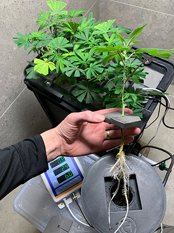 Vlak voor het schijven zag ik de eerste paar worteltjes aan mijn stekken. Om alvast wat meer wortelspektakel te laten zien heb ik een paar foto’s van wortels tijdens eerdere tests bijgevoegd. Voor de zekerheid heb ik toen een paar stekken op DWC en in moestuingrond gezet. Ze zijn netjes aangeslagen en dat geeft goede hoop voor de stekken die gesneden zijn om af te bloeien.
