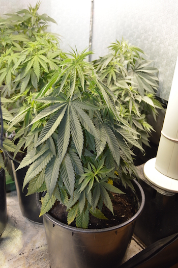 Hallo lieve cannabisvrienden en vriendinnen! Terwijl Mumford & Sons mijn kamer vullen met een opzwepend concert, rol ik een queen in een vloeitje, vul mijn kopje met koffie en begin ik vrolijk te rammen op mijn toetsenbord haha 😉 Komt ie dan, met de vijf dames gaat het super, de plant die het zo moeilijk had is op wonderlijke wijze hersteld. Ik had in mijn vorige update verkondigd dat ik zou gaan toppen, maar mama marihuana dacht: ‘laat ik Barney eens even zien hoe sterk mijn meiden zijn’. Alle bladeren van de, door fout verpotten gestreste plant en die ten tijden van het verpotten er nog aan zaten zijn dood. Maar mevrouw is toch terug gekomen en dat heb ik nog nooit gezien. Volledig hersteld en zelfs zonder te toppen voorzien van meerder stevige vertakkingen met een mooie gezonde groene kleur.