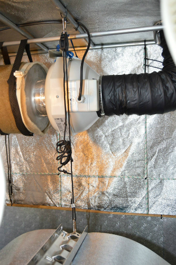 De hangers kunnen een gewicht tot 34 kilo per stuk dragen dus je kunt er van alles aan ophangen zoals je lamp, de reflectieplaten en zelfs een koolstoffilter als het moet. Ik heb ze aan de reflectieplaten vastgemaakt zodat ik die gemakkelijk kan verstellen. Ze hangen nu dus vol in het licht om het meeste ervan te weerkaatsen, als het goed is dus een indrukwekkende 97 procent!