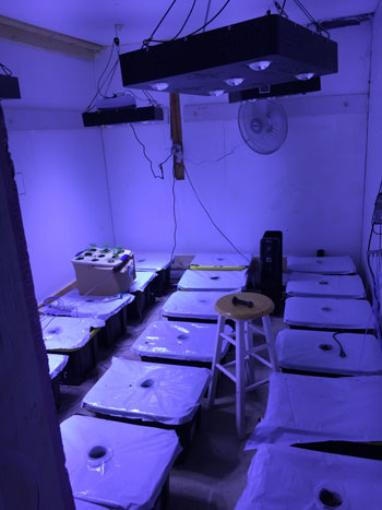 De ruimte waarin ik kweek is een geïsoleerd hok in de kelder van 9 vierkante meter. Daarin staan drie rijen van zeven 45-literbakken. Dit gaat mijn eerste kweek worden op een recirculerend deep water culture systeem (R-DWC). De ruimte per plant is 0,42 vierkante meter.