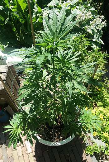 Update 16 juni 2022: Hallo CNNBS, hierbij bijdrage drie. Ja, het is ff mooi weer, is meteen te zien aan de planten die alweer ca. 2 weken buiten staan, en nu zo rond de 65 cm hoog zijn. Tijdens noodweer op 6 juni kwam nr. 3 helemaal op apegapen te liggen. Ze had een onwerkelijk diepe buiging gemaakt. Even gestut, gelukkig was er nog net geen rollator nodig. Heb haar lief toegesproken want gezegd dat als ze niet overeind blijft ik haar ga knippen. En zoals te zien is alles weer tof haha.