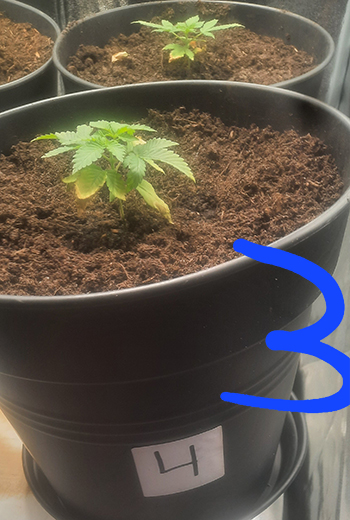 - Nummero 3 gaat mijn inziens nog steeds het minst goed. Blijft achter op de rest qua groei en heeft veel lichtgroener blad.