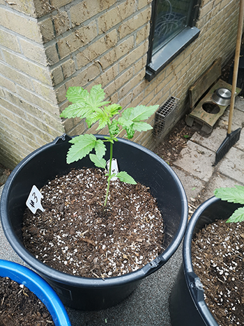 Update 7 juni 2022: Hallo mensen! Ik ben dit jaar wat later begonnen maar het gaat voorspoedig. Twee van de vijf planten staan hier bij ons thuis, en de anderen krijgen een ander onderkomen. Plantje #2 en #4 staan hier met een bloeiende autoflower ertussen, en de plantjes #1, #3 en #5 zijn verhuisd. Ze zijn allemaal al naar een grote pot waarin ze lekker kunnen groeien. Het ziet er wel lief uit, van die kleintjes in die grote potten; het lijkt wel of ze een wereld voor zichzelf hebben. Groene groet, Heady