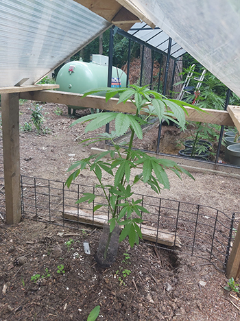 De mail word nu toch wel een beetje lang dus nog gauw even wat technische info: nr. 2, 4 & 5 staan in de volle grond met een mix van +/- 50 liter lightmix, oude aarde, perliet en azomite, en daar heb ik 4 guerilla tabs per plant aan toegevoegd. Nr. 1 & 3 staan in kuipen met 40 liter en 70 liter respectievelijk met dezelfde aardemix en guerilla tabs. En af en toe geef ik zelfgemaakte brandnetelgier.