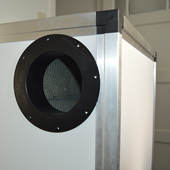 Voordat je verder gaat met het plaatsen van de andere zijwanden, plaats je eerst de drie lichtdichte luchtingangen aan de onderzijde van de achterwand. Je kunt ze naar binnen of naar buiten plaatsen, omdat ik graag alle ruimte in mijn kweekkast benut, plaats ik ze aan de buitenkant. Ik schuif hiervoor het ene deel vanuit de binnenkant door een van de gaten en plaats het andere deel ertegenaan. Een kwartslag draaien en ze zetten stevig op hun plek.