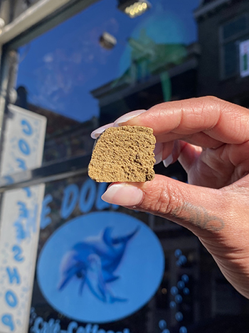 En high worden is ook totaal geen probleem bij The Dolphins, want ze serveren er heerlijke rookwaar en niet voor toeristenprijzen. Op aanraden van de nieuwe eigenaren (Teun en Soel), die toevallig beiden aanwezig zijn op het moment, schaffen we een knaller van een Amnesia aan, en een brok fijne Marokkaanse hasj genaamd Madelaine. De wiet kost slechts €7,50 de gram en de hasj maar €6,50. Koopjes dus, en zeker omdat The Dolphins vlak in het centrum ligt. Geen typische ’toeristenshop’ dus, hoewel toeristen hier natuurlijk van harte welkom zijn.