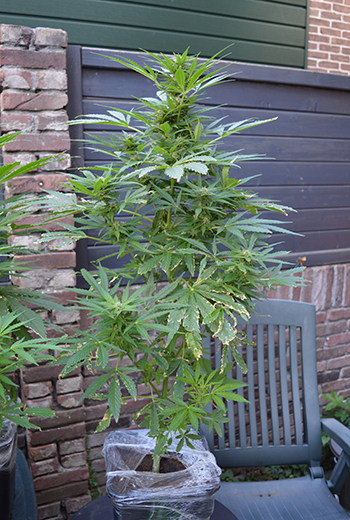 Zonder gekheid. Ik hoop natuurlijk ook dat de wereld snel van het virus af is, maar ik heb een fijne vakantie gehad. De oogst uit mijn kweekkast (24k Gold van DNA Genetics) was droog en zat veilig en luchtdicht opgeborgen in weckpotten. Alleen stonden buiten nog wel de vijf mystery CNNBS Autoflowers, en die waren bovendien flink verwaaid, zoals je misschien nog weet van mijn laatste verslag. Inmiddels gaat het gelukkig een stuk beter met ze, en staan ze allemaal vol in bloei. Ik zal ze één voor één met je doornemen, maar kijk eerst even hoe ze allemaal gegroeid zijn.