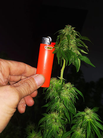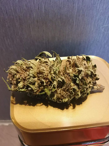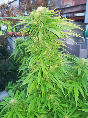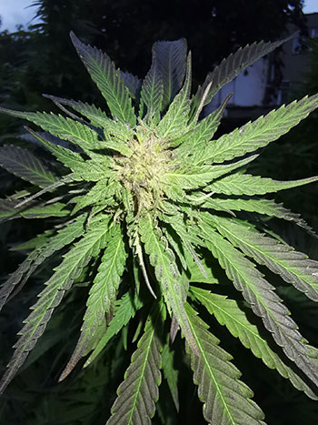 Met 7 bloeiweken van de maximale 9 heeft deze dame het het langst volgehouden. Met meer slecht weer op komst, en na het ontdekken van rot in de andere dames, heb ik ervoor gekozen om deze lady nog even binnen verder te laten bloeien. Ze heeft dus twee weken extra gekregen; een totale leeftijd van 27 weken is gezien de nodige buitenstress niet mis.