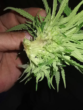 Ook al heb je een trimbag, het trimmen van een plant waar je rot in vindt is echt ROT, painstaking en time consuming. Je moet continu checken of je nergens nog een klein plekje schimmel vindt, want dat willen we echt niet. 22 weken heeft deze plant gestaan, maar helaas heb ik wel twee weken te vroeg moeten.