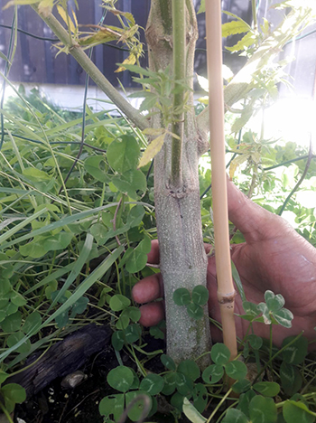 Ik heb haar dit seizoen één keer voeding gegeven in de vorm van 5 liter water met wat Mills Organic voeding en voor de rest gewoon zo laten staan. Moeder natuur heeft gezorgd voor voldoende water en licht dus ik heb enkel wat gebogen en getopt.