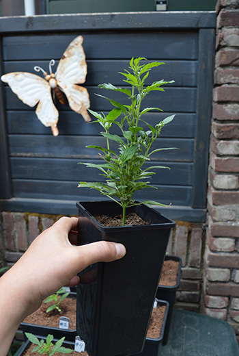 De autoflowers zijn nog niet zo groot maar ik verwacht er ook niet heel veel van. Zoals ik wel vaker heb verteld, heb ik maar een schaduwtuintje, dus alles is mooi meegenomen.