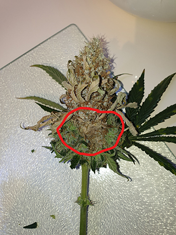 Ook de Sneeze-toppen zijn erg compact! Ik denk stiekem dat dat een gevolg is van de bewatering. Ik heb de dames in vorige kweekrondes denk ik vaak te veel water gegeven, waardoor de toppen wat luchtiger waren. Zulke harde toppen maken het wel wat lastiger om te zien of er toprot in zit. Normaal kan ik het ook ruiken; er hangt dan een zure lucht die niet prettig is, en dan weet je dat het mis is.