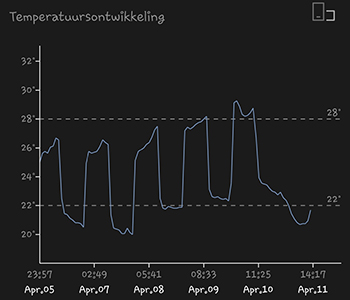 Aan het begin van de week had ik de ventilatieroosters op de etage waar de kasten staan open gezet, zodat de luchtvochtigheid laag bleef. Het werd dus ook meteen iets frisser in huis wat het weekgemiddelde van de temperatuur iets omlaag heeft gebracht. De gemiddelde temperatuur was afgelopen week 24,06 graden Celsius. De gemiddelde luchtvochtigheid van afgelopen week was 43,80 procent en dat is zoals ik hem eigenlijk hebben wilde, namelijk onder de 50 procent.