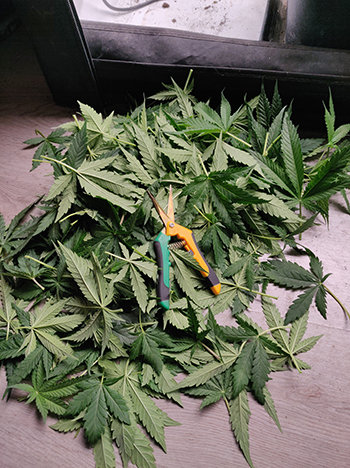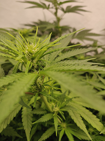 Een kleine drie weken staan de dames nu op 12/12, en de eerste topvorming is te zien. Mooie volle knoppen die bij sommige planten ook lekker dicht op elkaar groeien, met weinig blad ertussen. Dat zien we graag want het betekent veel ruimte voor de oh zo gewilde bloemen. In de twee weken die achter ons liggen hebben we ook veel blad weggehaald. Liefst twee keer zijn de planten van hun overtollige bladeren ontdaan zoals je op de foto’s ziet, en daar laten we het bij …voorlopig…